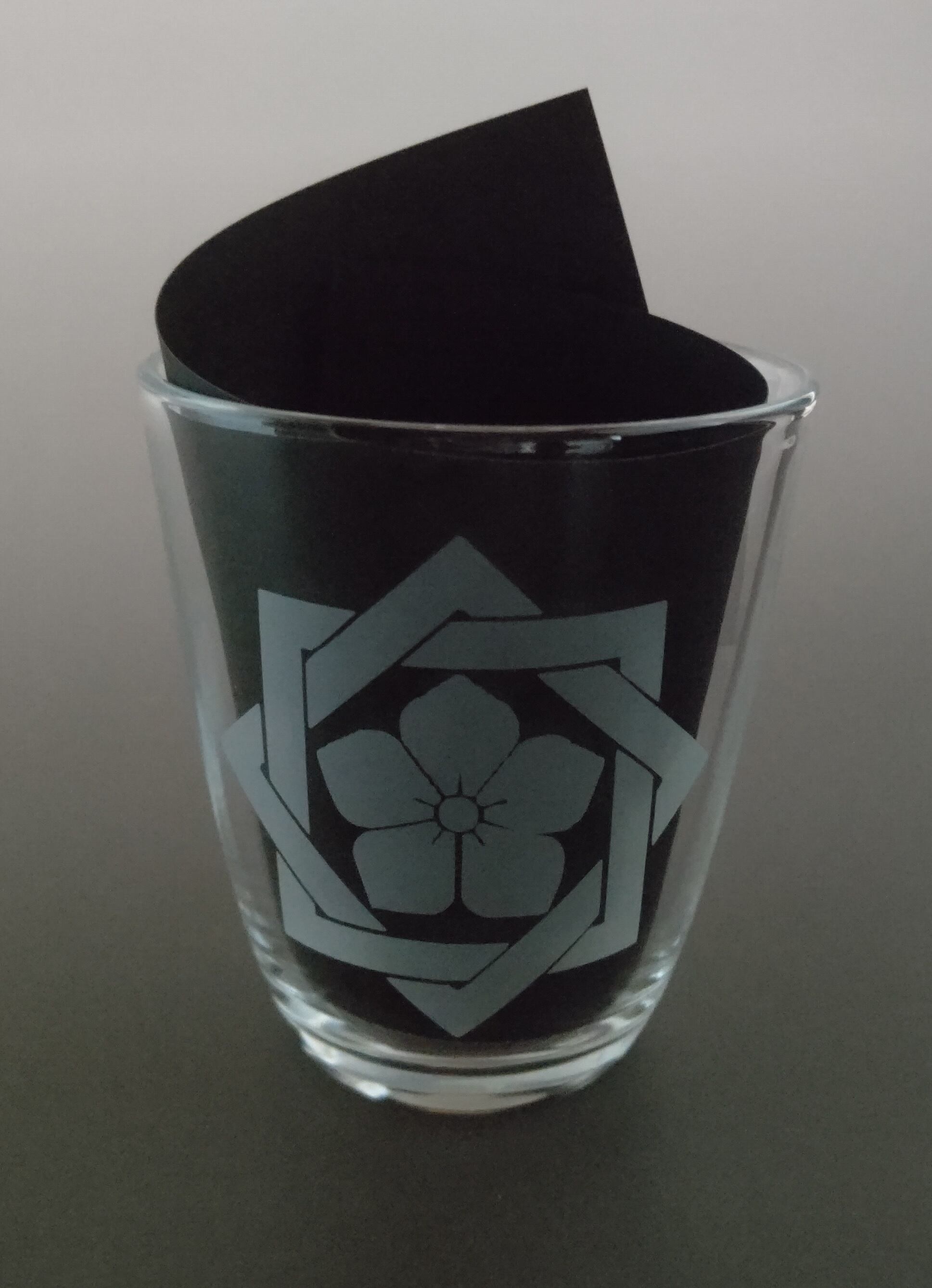 正面に坂本龍馬の家紋、真後ろには龍馬直筆